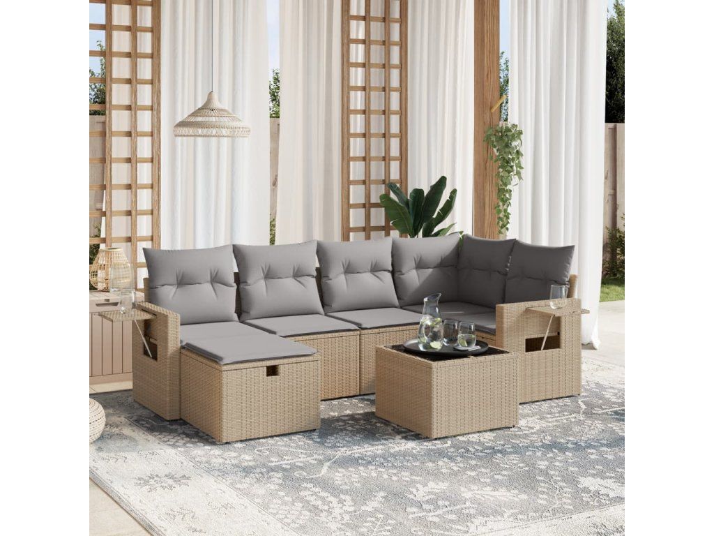 7dílná zahradní sedací souprava a podušky mix béžové polyratan 3263805