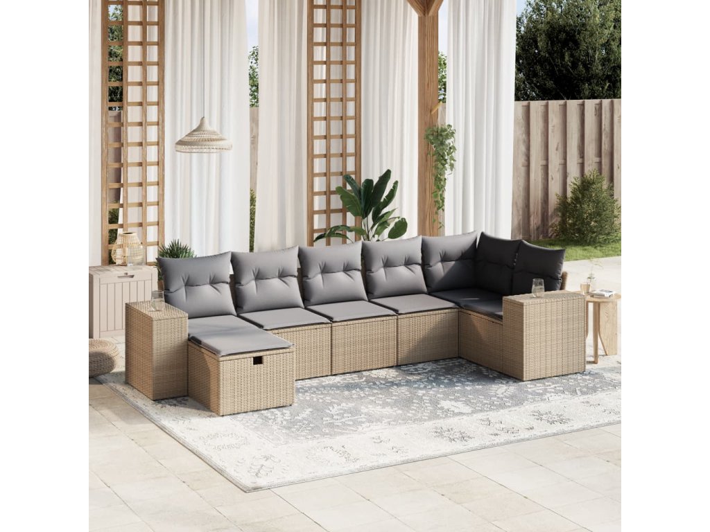 7dílná zahradní sedací souprava a podušky mix béžové polyratan 3264455