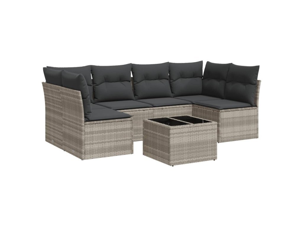 7dílná zahradní sedací souprava a podušky světle šedá polyratan 3217402