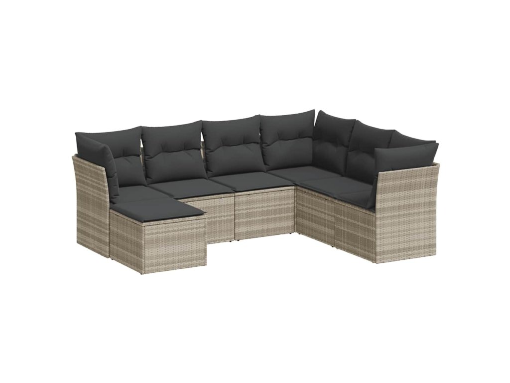 7dílná zahradní sedací souprava a podušky světle šedá polyratan 3217992