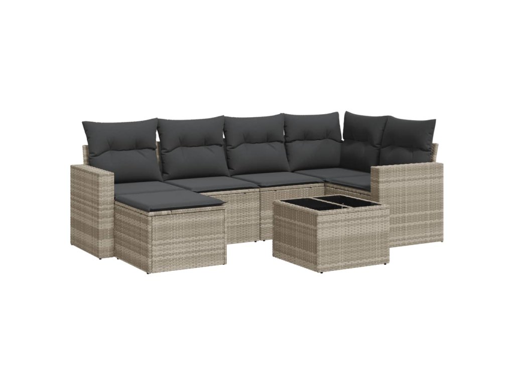 7dílná zahradní sedací souprava a podušky světle šedá polyratan 3219262