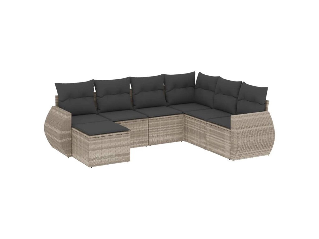 7dílná zahradní sedací souprava a podušky světle šedá polyratan 3221701