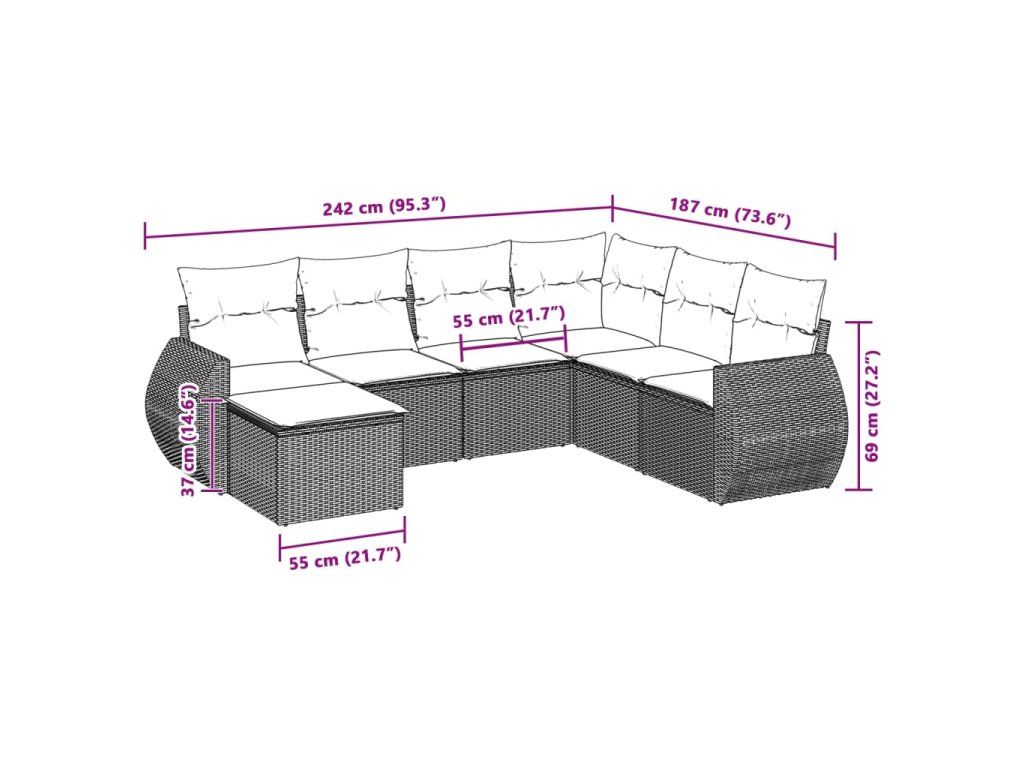 Tato zahradní sedací souprava je dokonalým doplňkem vaší zahrady, terasy nebo dvorku a poskytne vám pohodlné a příjemné místo, kde si můžete povídat s rodinou a přáteli nebo jen tak odpočívat a užívat si pobyt venku.