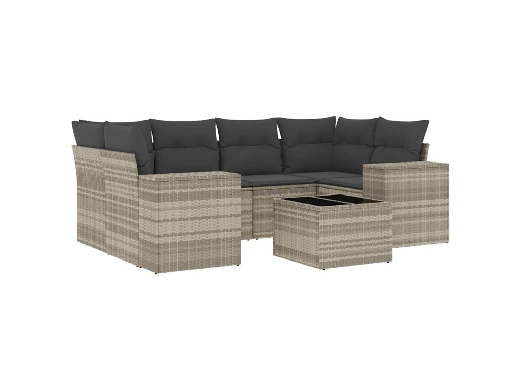 7dílná zahradní sedací souprava a podušky světle šedá polyratan 3222321