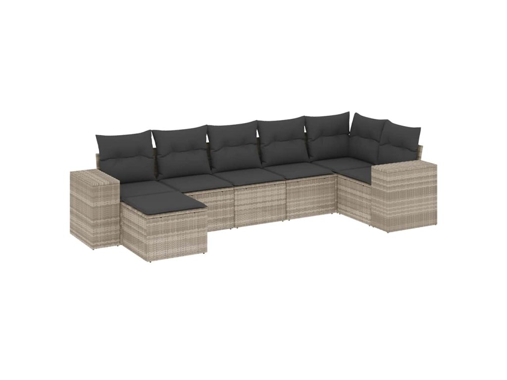7dílná zahradní sedací souprava a podušky světle šedá polyratan 3222881