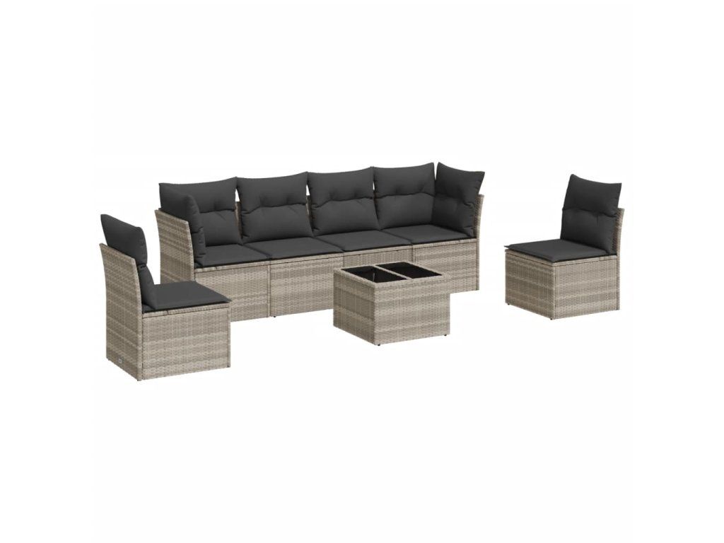 7dílná zahradní sedací souprava a podušky světle šedá polyratan 3249221