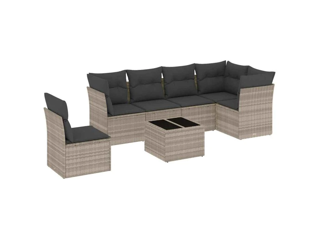 7dílná zahradní sedací souprava a podušky světle šedá polyratan 3249551
