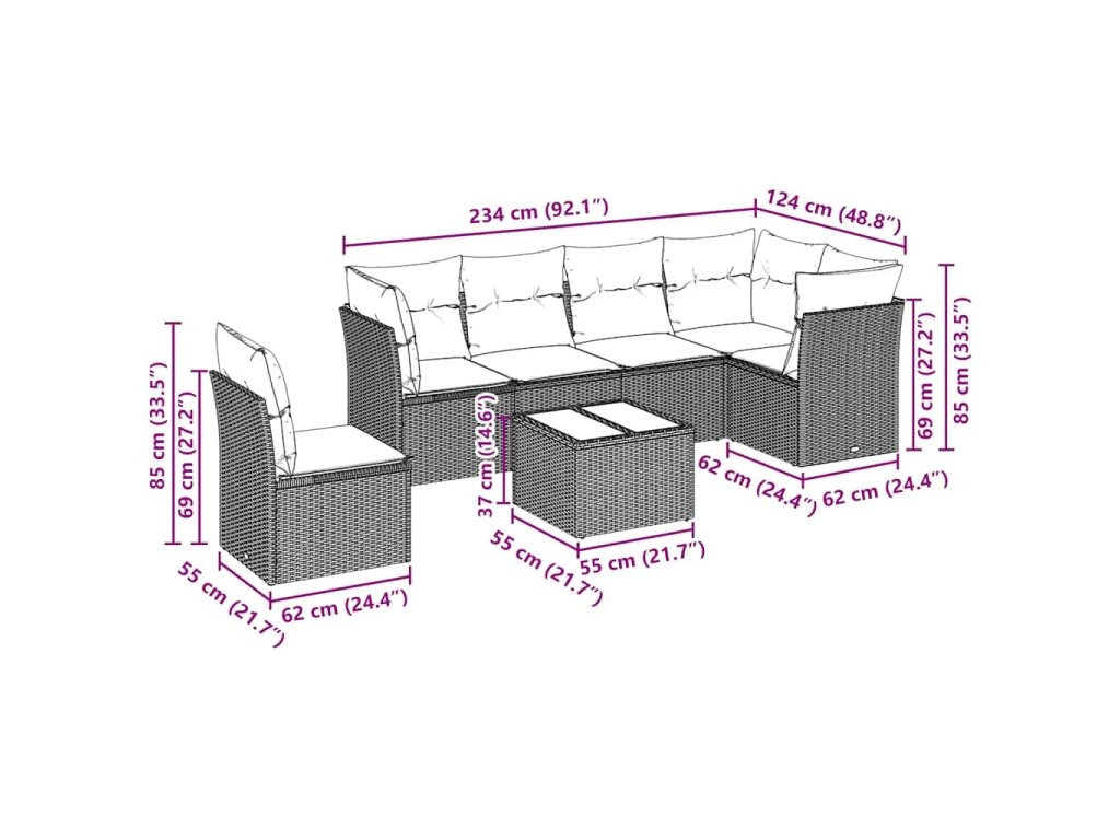 Tato zahradní sedací souprava je dokonalým doplňkem vaší zahrady, terasy nebo dvorku a poskytne vám pohodlné a příjemné místo, kde si můžete povídat s rodinou a přáteli nebo jen tak odpočívat a užívat si pobyt venku.
