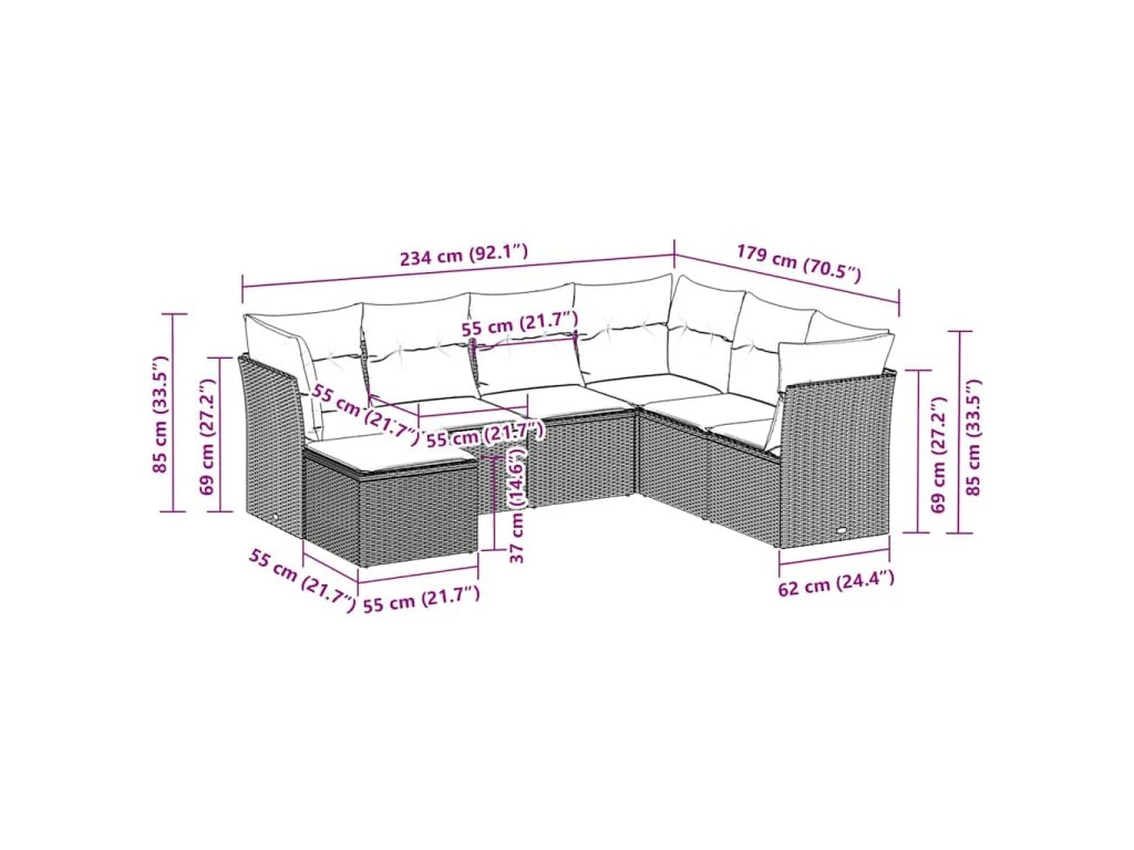 Tato zahradní sedací souprava je dokonalým doplňkem vaší zahrady, terasy nebo dvorku a poskytne vám pohodlné a příjemné místo, kde si můžete povídat s rodinou a přáteli nebo jen tak odpočívat a užívat si pobyt venku.