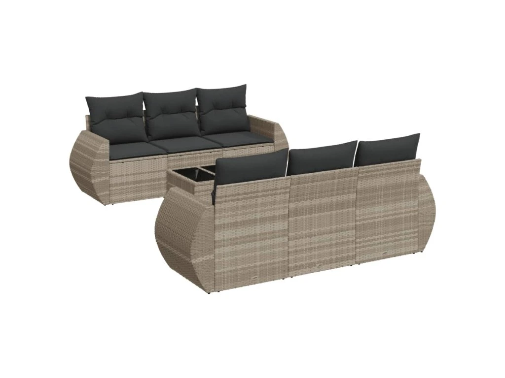 7dílná zahradní sedací souprava a podušky světle šedá polyratan 3253449