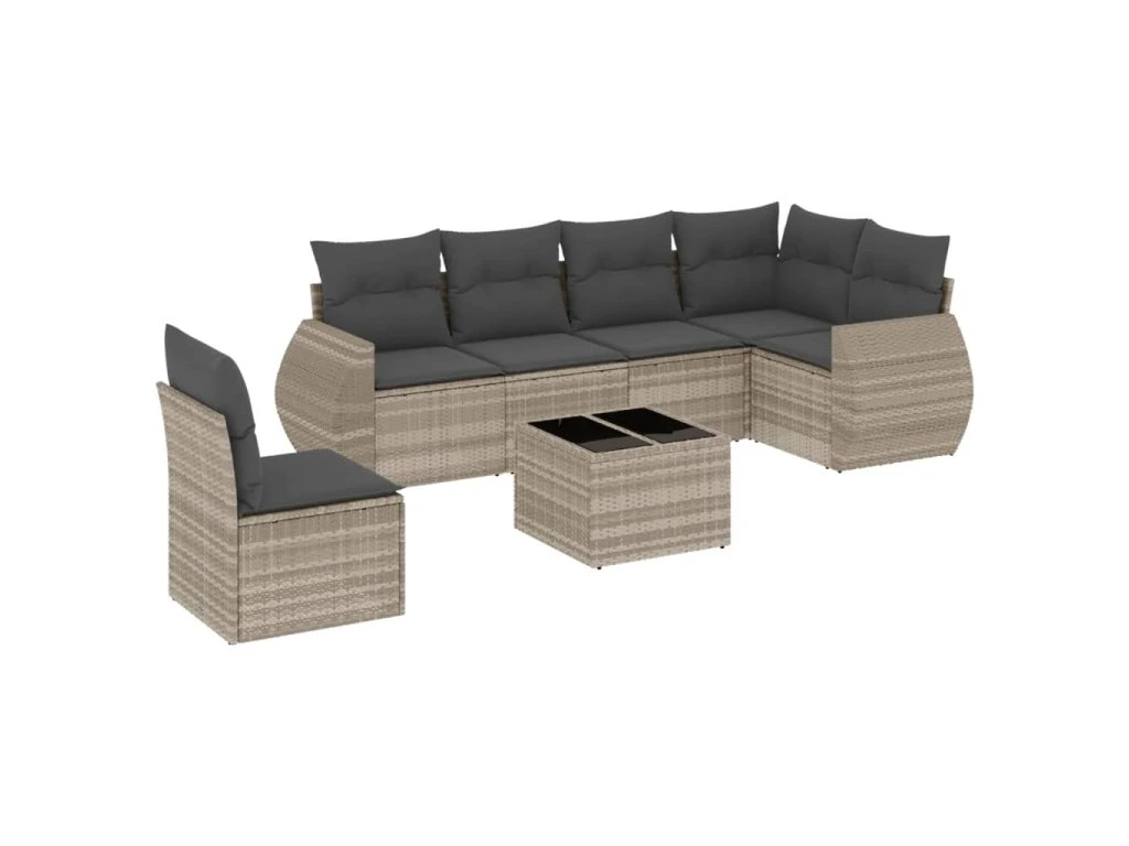 7dílná zahradní sedací souprava a podušky světle šedá polyratan 3253779