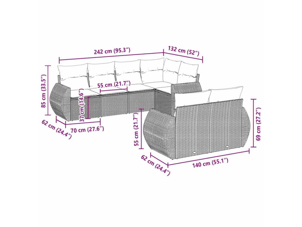 Tato zahradní sedací souprava je dokonalým doplňkem vaší zahrady, terasy nebo dvorku a poskytne vám pohodlné a příjemné místo, kde si můžete povídat s rodinou a přáteli nebo jen tak odpočívat a užívat si pobyt venku.
