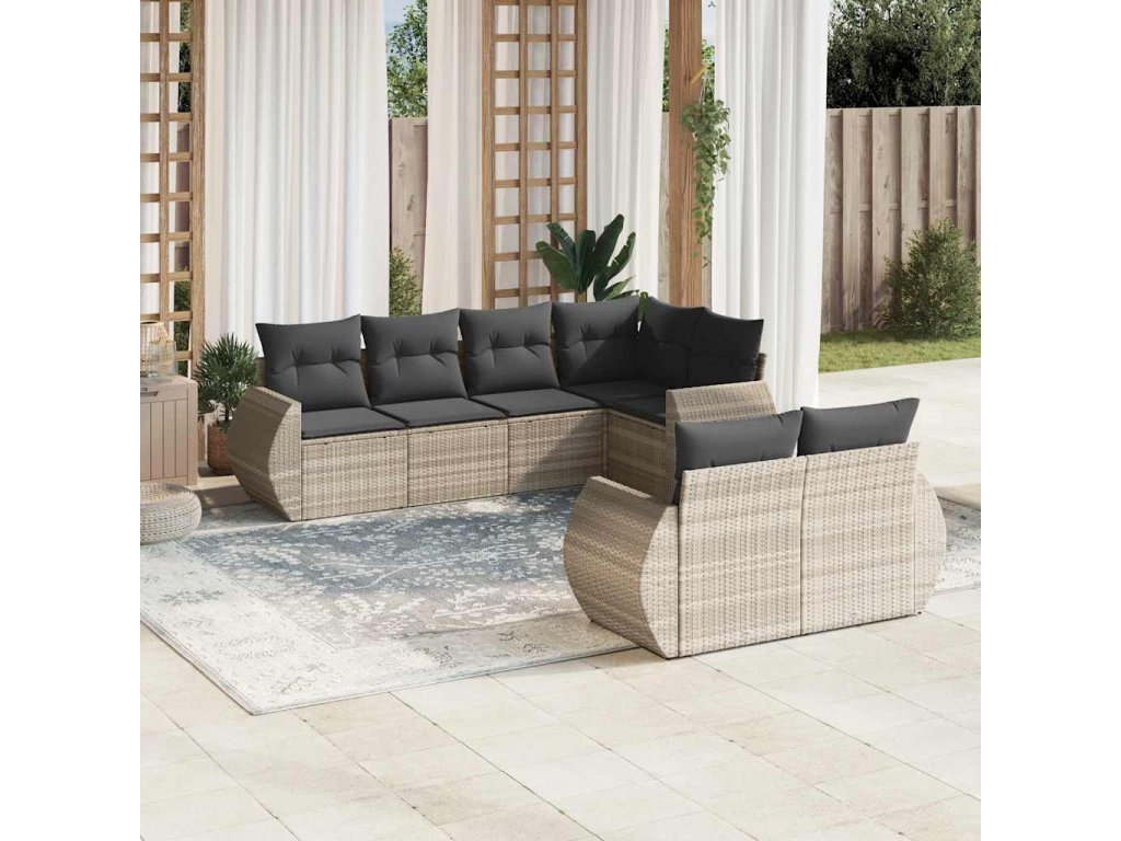 7dílná zahradní sedací souprava a podušky světle šedá polyratan 3253949