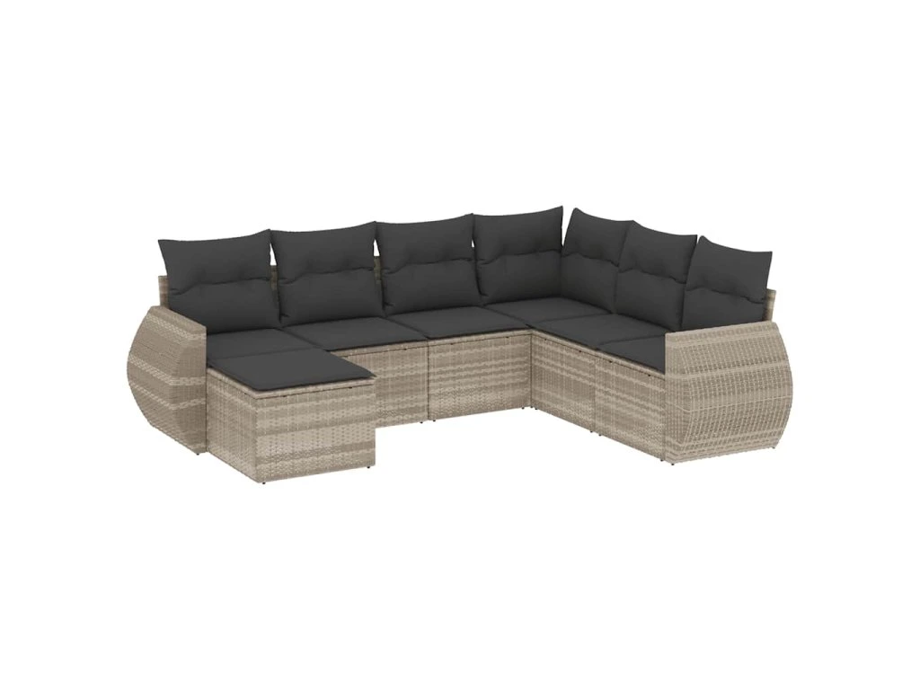 7dílná zahradní sedací souprava a podušky světle šedá polyratan 3254039
