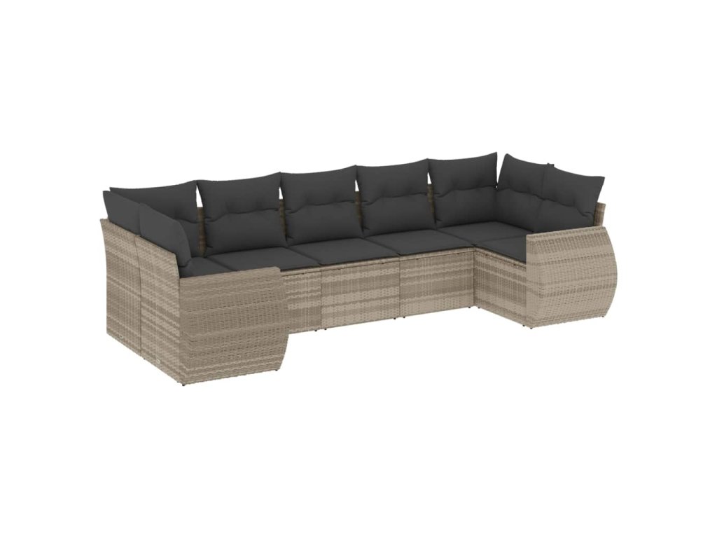 7dílná zahradní sedací souprava a podušky světle šedá polyratan 3254129