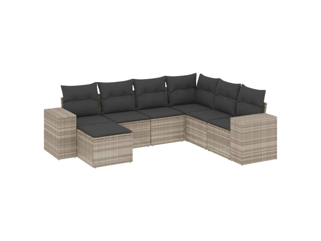 7dílná zahradní sedací souprava a podušky světle šedá polyratan 3255239