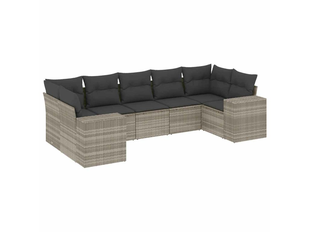 7dílná zahradní sedací souprava a podušky světle šedá polyratan 3255329