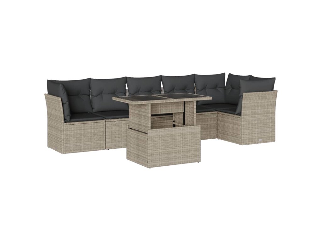 7dílná zahradní sedací souprava a podušky světle šedá polyratan 3266602