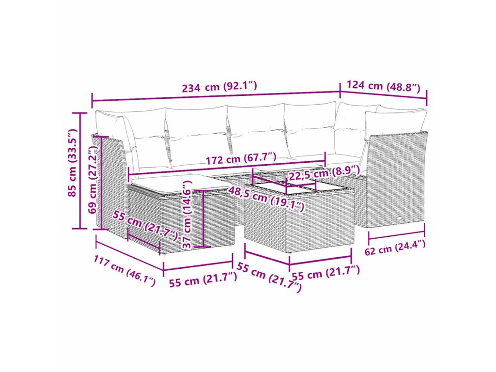 Tato zahradní sedací souprava je dokonalým doplňkem vaší zahrady, terasy nebo dvorku a poskytne vám pohodlné a příjemné místo, kde si můžete povídat s rodinou a přáteli nebo jen tak odpočívat a užívat si pobyt venku.