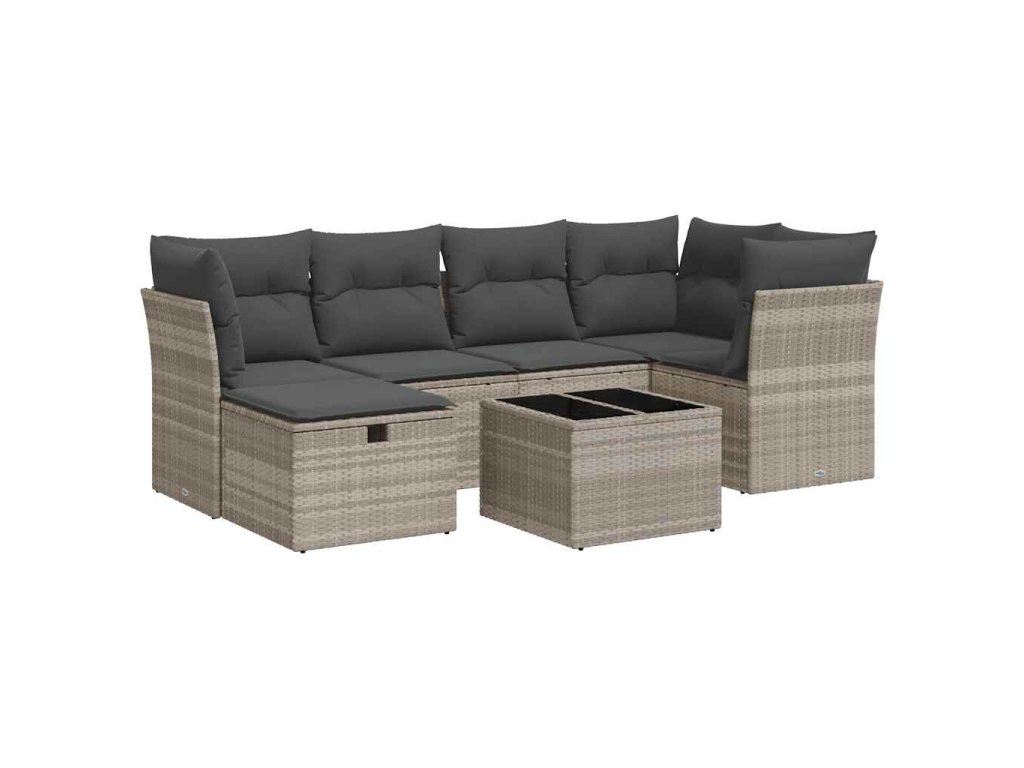 7dílná zahradní sedací souprava a podušky světle šedá polyratan 3325298
