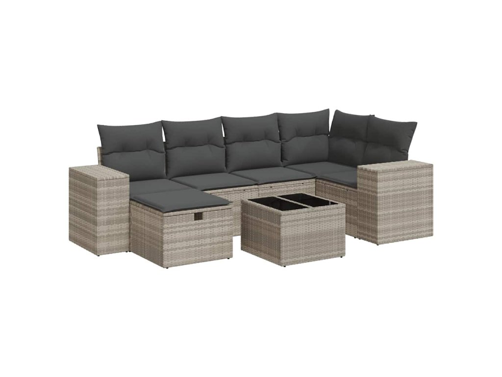 7dílná zahradní sedací souprava a podušky světle šedá polyratan 3325698