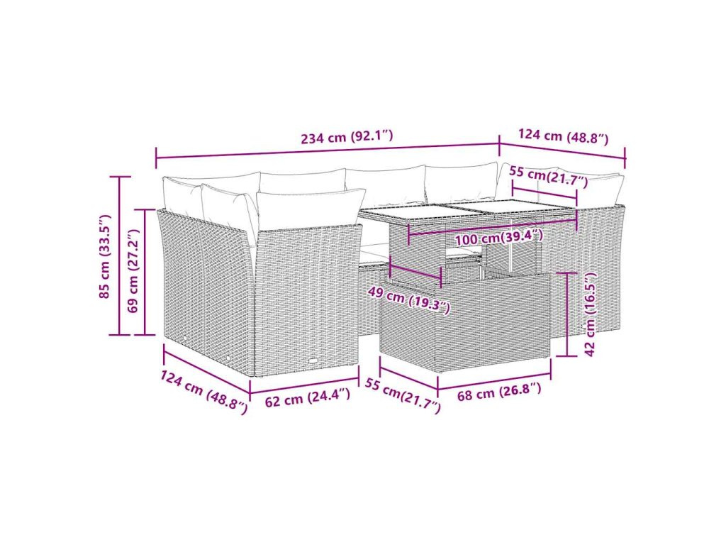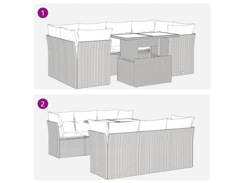 Tato zahradní sedací souprava je dokonalým doplňkem vaší zahrady, terasy nebo dvorku a poskytne vám pohodlné a příjemné místo, kde si můžete povídat s rodinou a přáteli nebo jen tak odpočívat a užívat si pobyt venku.