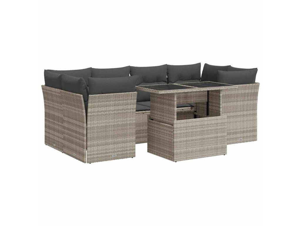 7dílná zahradní sedací souprava a podušky světle šedá polyratan 3326113