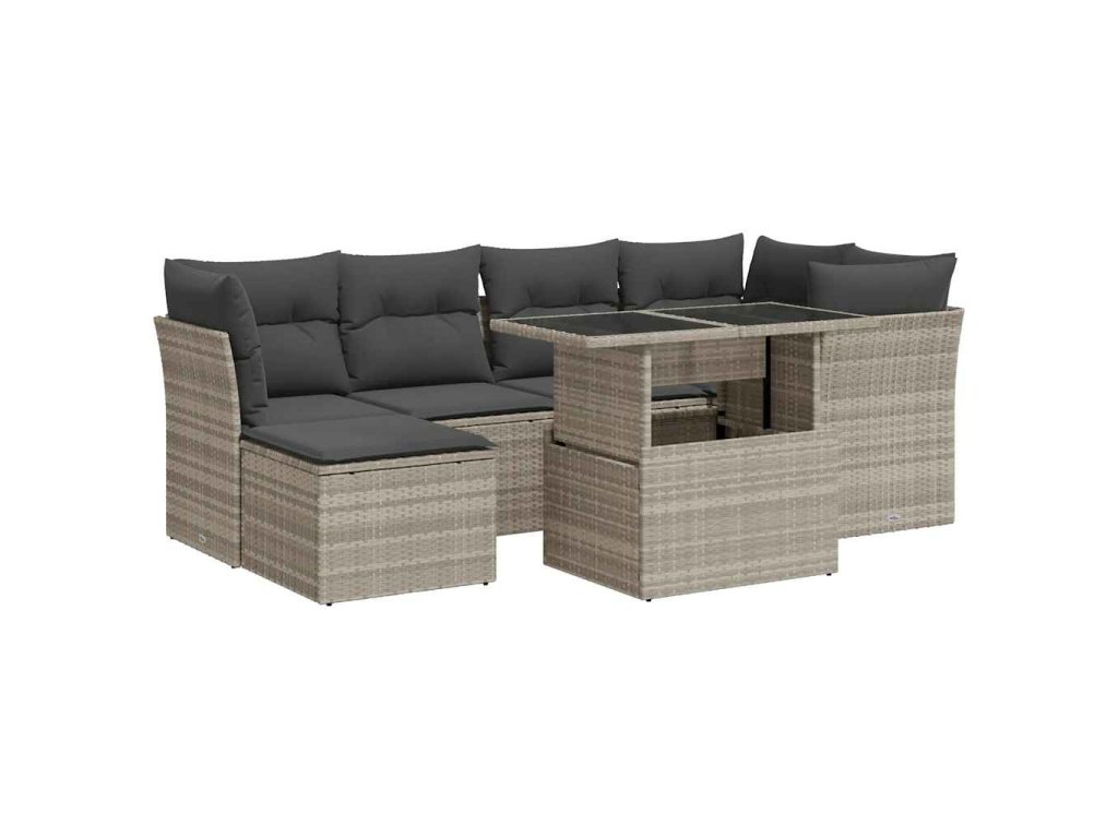7dílná zahradní sedací souprava a podušky světle šedá polyratan 3326193