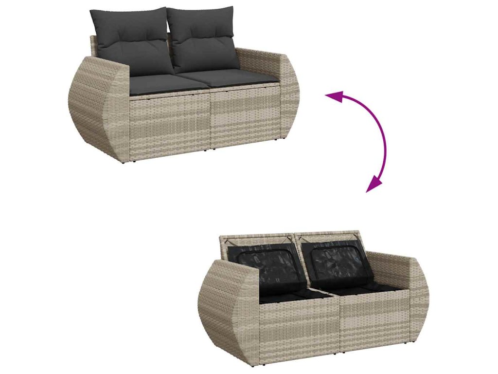 7dílná zahradní sedací souprava a podušky světle šedá polyratan 3326593