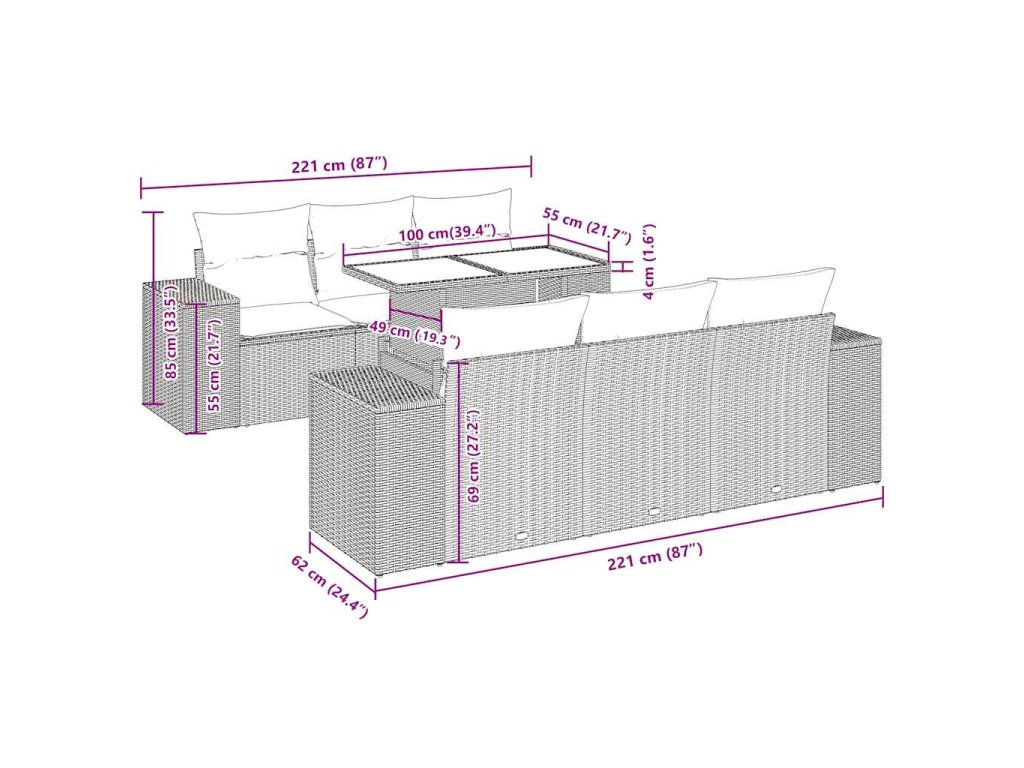 Tato zahradní sedací souprava je dokonalým doplňkem vaší zahrady, terasy nebo dvorku a poskytne vám pohodlné a příjemné místo, kde si můžete povídat s rodinou a přáteli nebo jen tak odpočívat a užívat si pobyt venku.