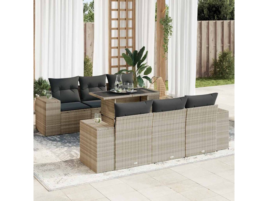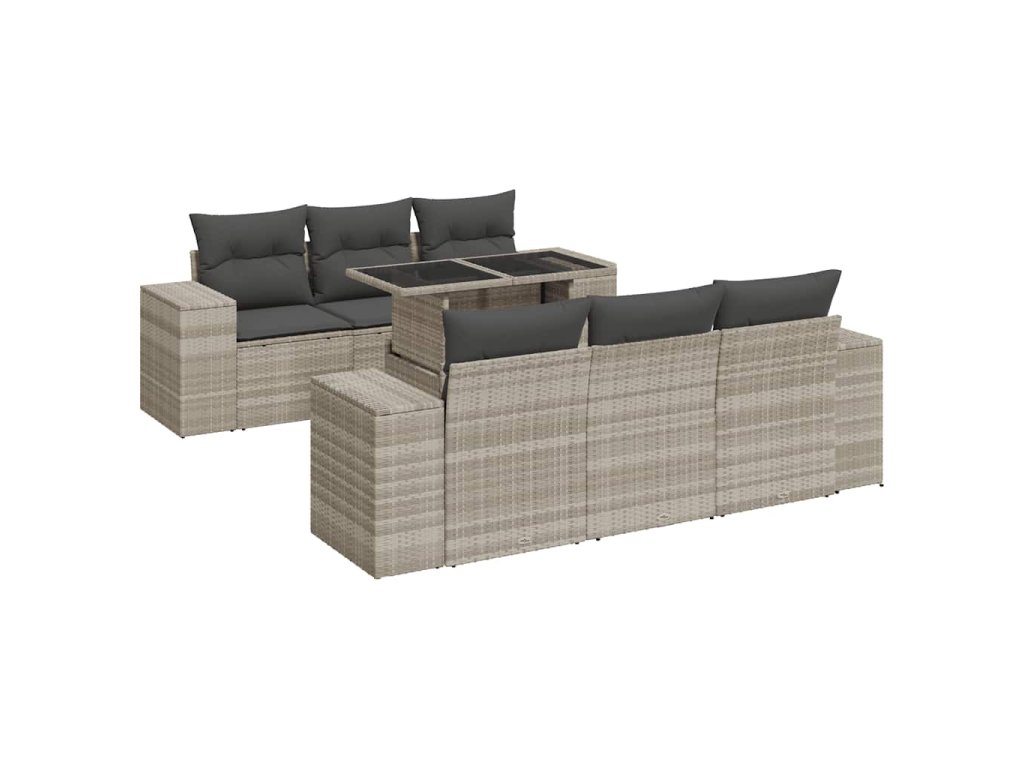 7dílná zahradní sedací souprava a podušky světle šedá polyratan 3326743