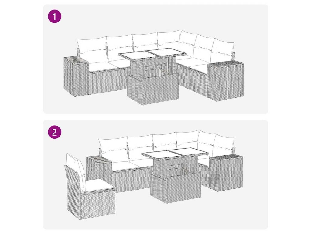 - Modulární design: Tato sada venkovního nábytku se vyznačuje modulární konstrukcí, je tedy zcela flexibilní a lze ji snadno přemisťovat, takže si můžete uspořádat venkovní nábytek dle vašich potřeb.