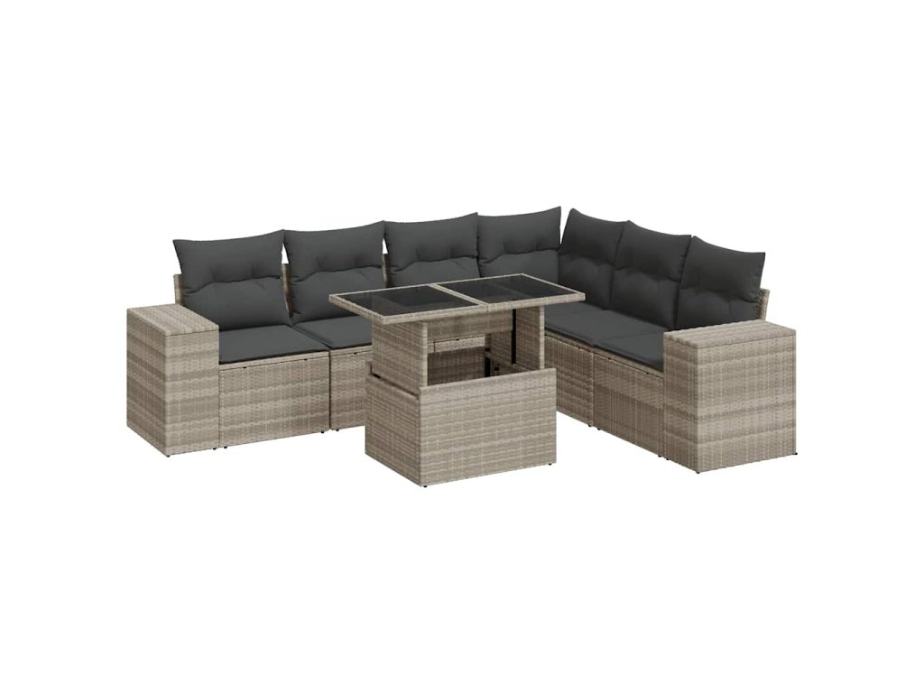 7dílná zahradní sedací souprava a podušky světle šedá polyratan 3326813