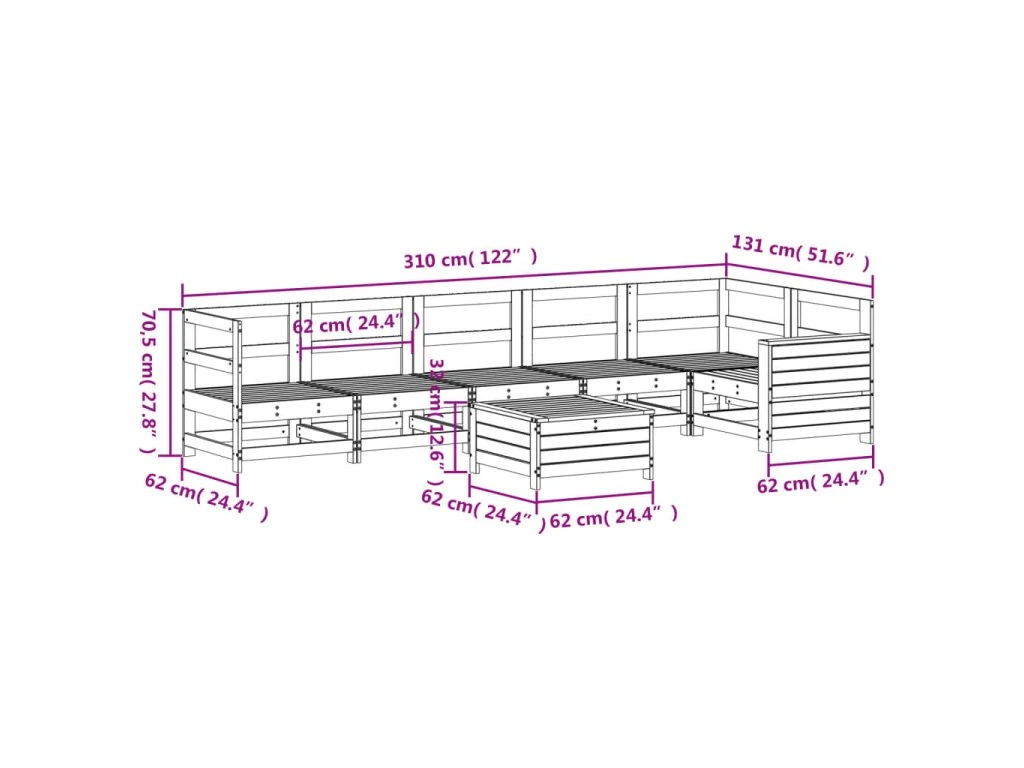 7dílná zahradní sedací souprava bílá masivní borové dřevo 3250873