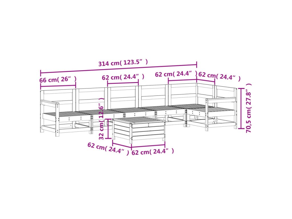 7dílná zahradní sedací souprava bílá masivní borové dřevo 3250897