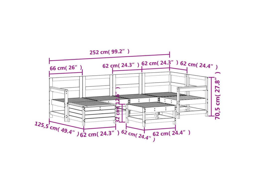 7dílná zahradní sedací souprava bílá masivní borové dřevo 3250933