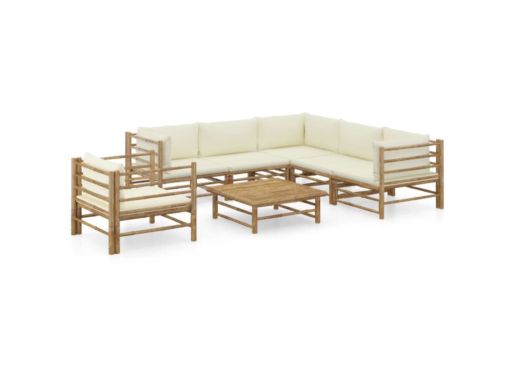 7dílná zahradní sedací souprava + krémově bílé podušky bambus 3058215