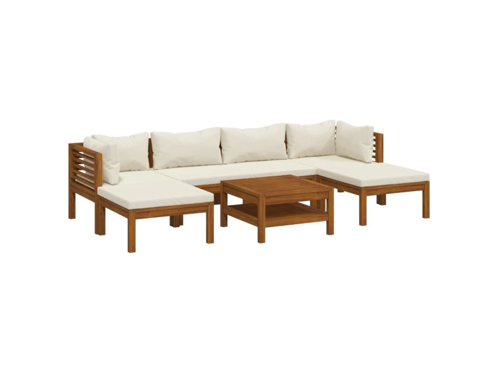 7dílná zahradní sedací souprava krémové podušky masivní akácie 3086946