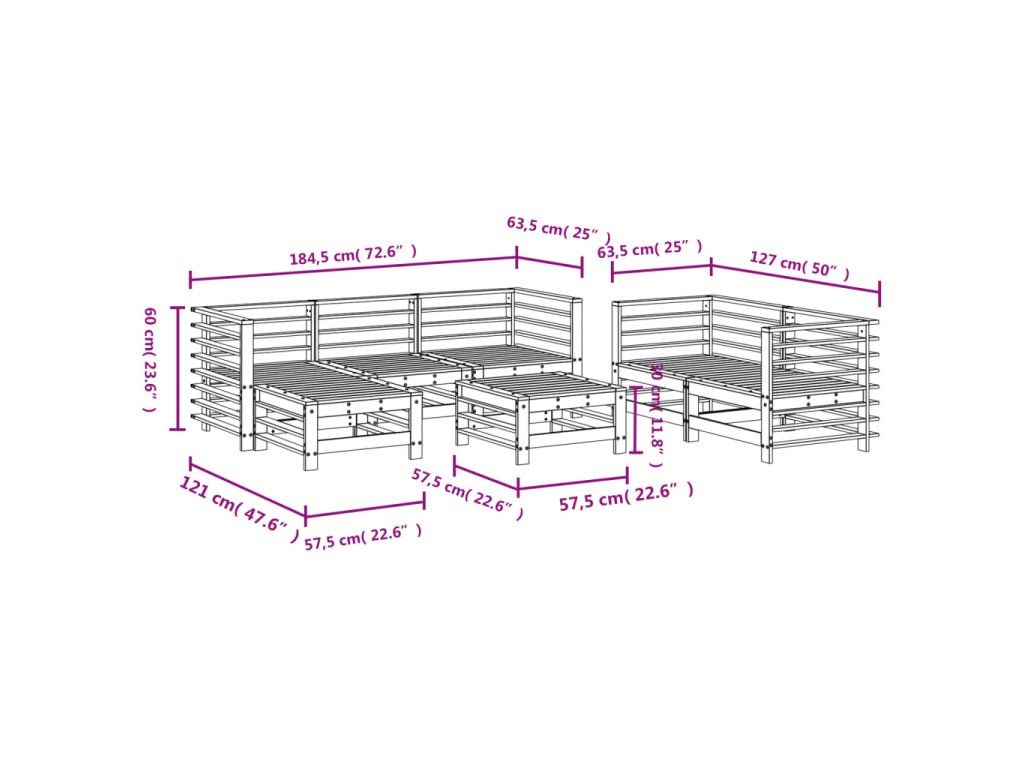 - Rozměry středové pohovky: 57,5 x 63,5 x 60 cm (Š x H x V)