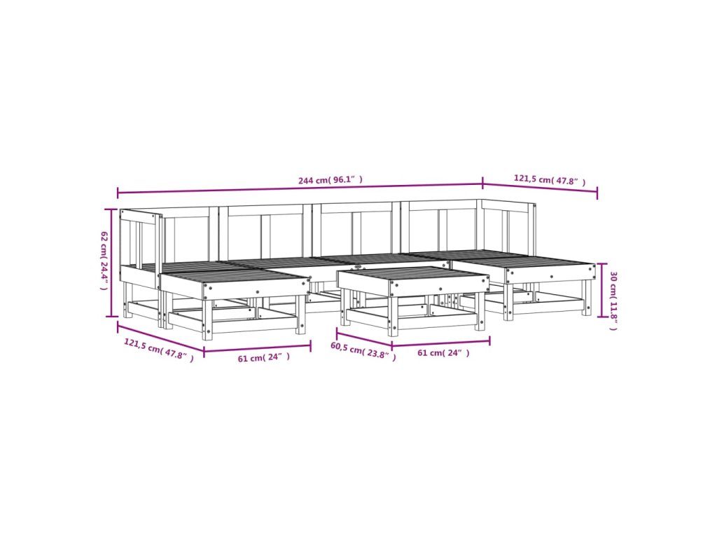 - Rozměry středové pohovky: 61 x 61 x 62 cm (D x Š x V)