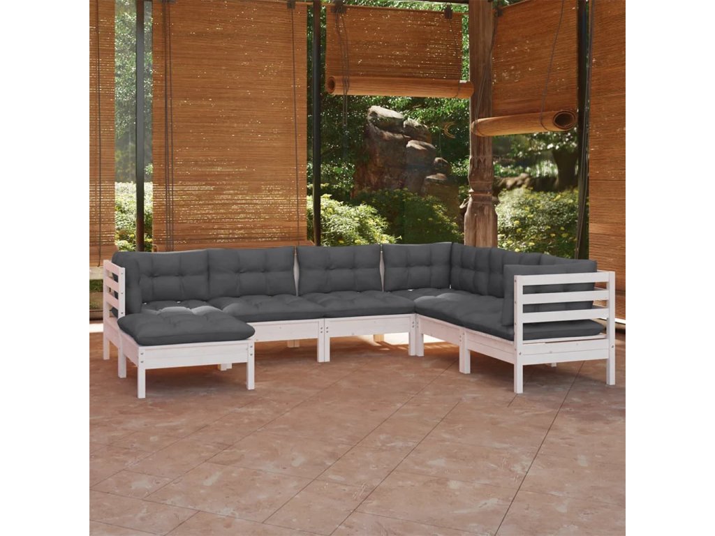 7dílná zahradní sedací souprava podušky bílá masivní borovice 3096563