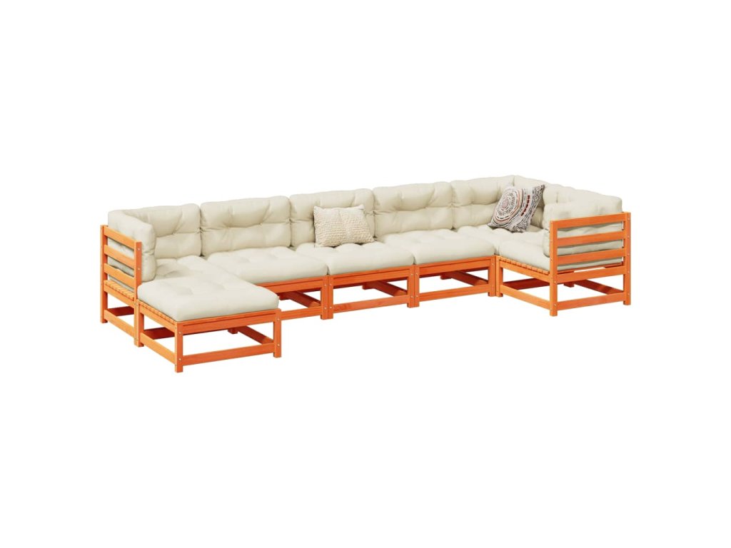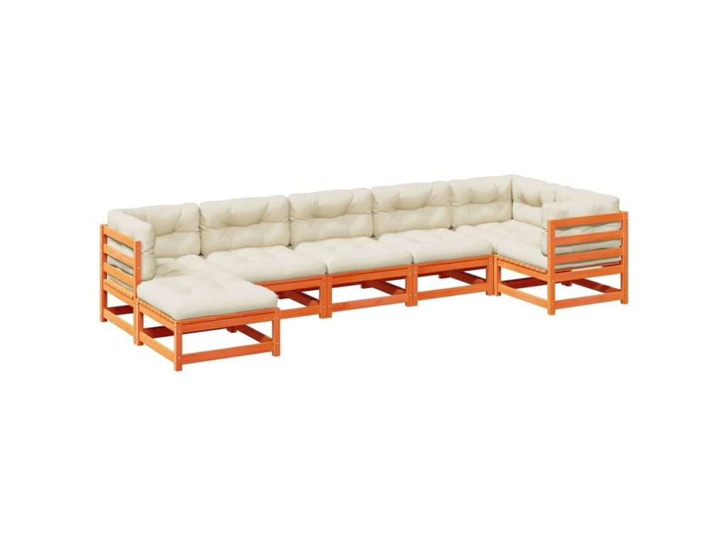 7dílná zahradní sedací souprava podušky voskově hnědá borovice 3299546