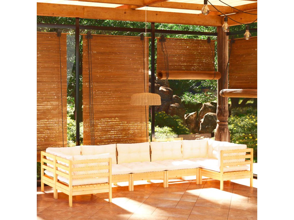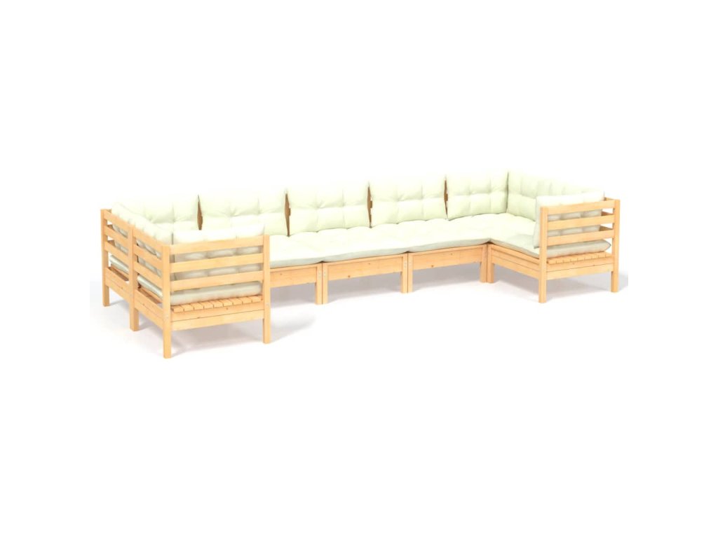 7dílná zahradní sedací souprava s krémovými poduškami borovice 3097307