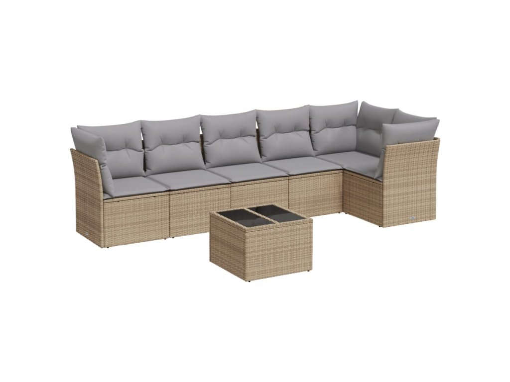 7dílná zahradní sedací souprava s poduškami béžová polyratan 3217669