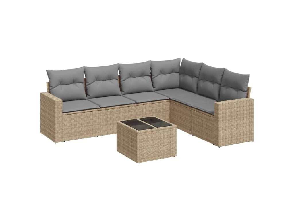 7dílná zahradní sedací souprava s poduškami béžová polyratan 3219009