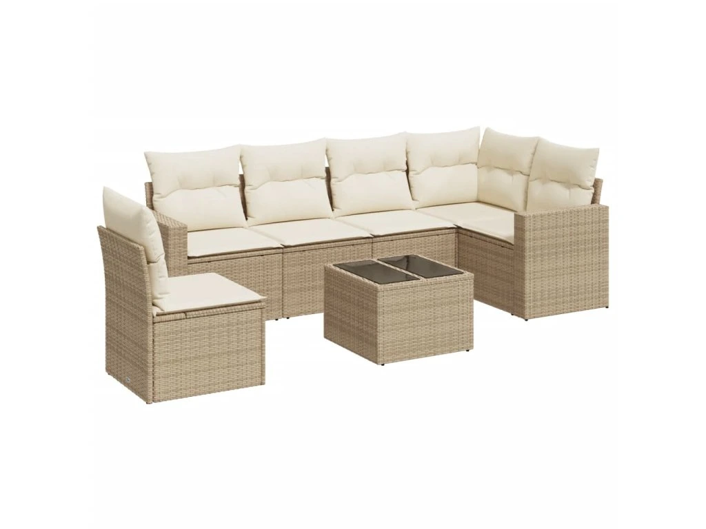 7dílná zahradní sedací souprava s poduškami béžová polyratan 3219028