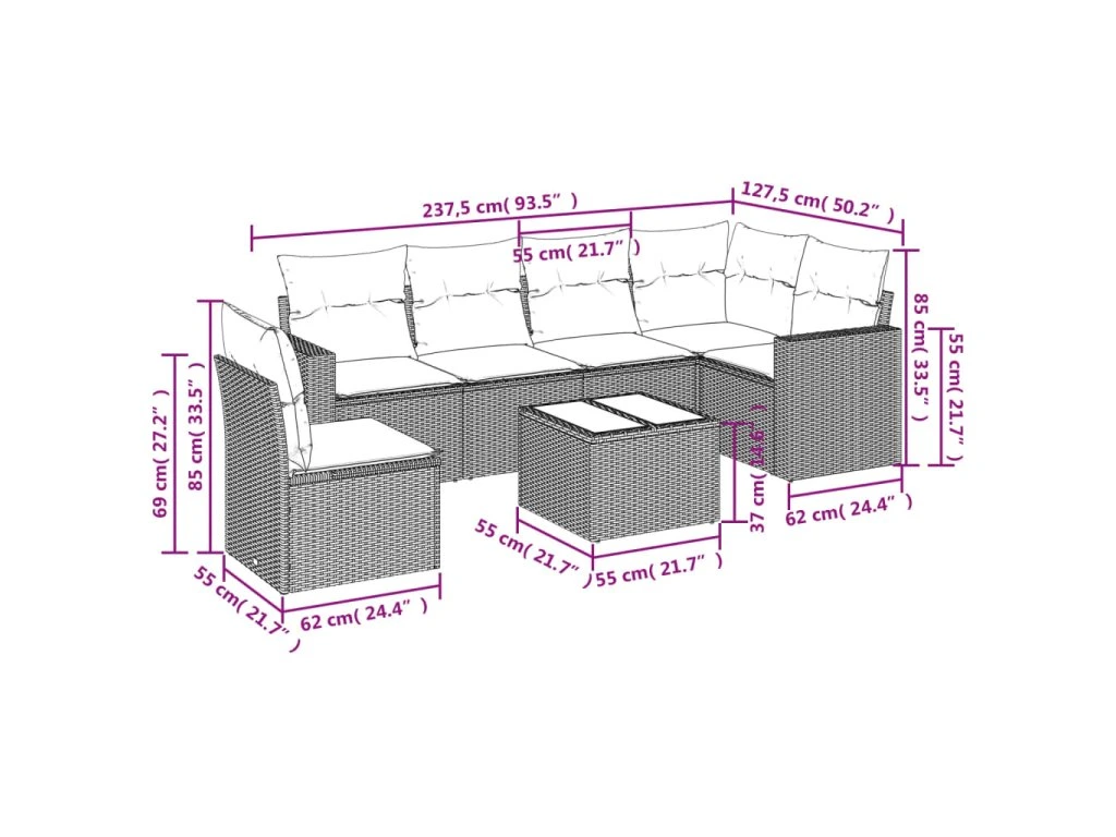 Tato zahradní sedací souprava je dokonalým doplňkem vaší zahrady, terasy nebo dvorku a poskytne vám pohodlné a příjemné místo, kde si můžete povídat s rodinou a přáteli nebo jen tak odpočívat a užívat si pobyt venku.
