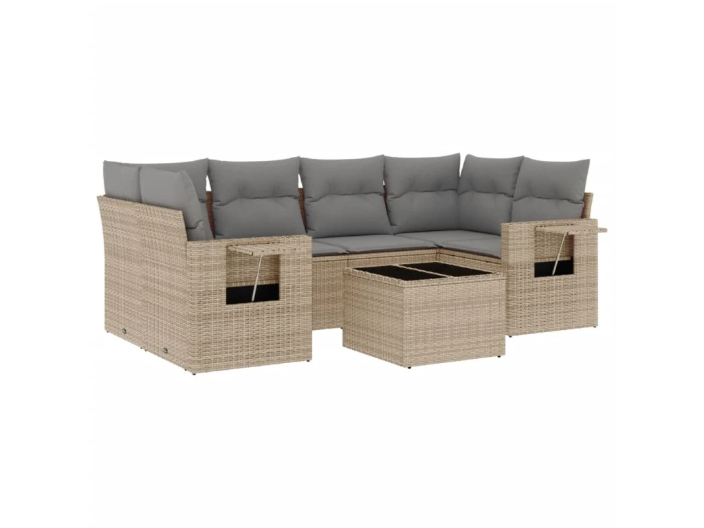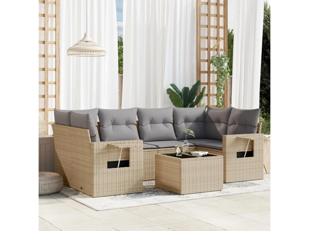 7dílná zahradní sedací souprava s poduškami béžová polyratan 3219918