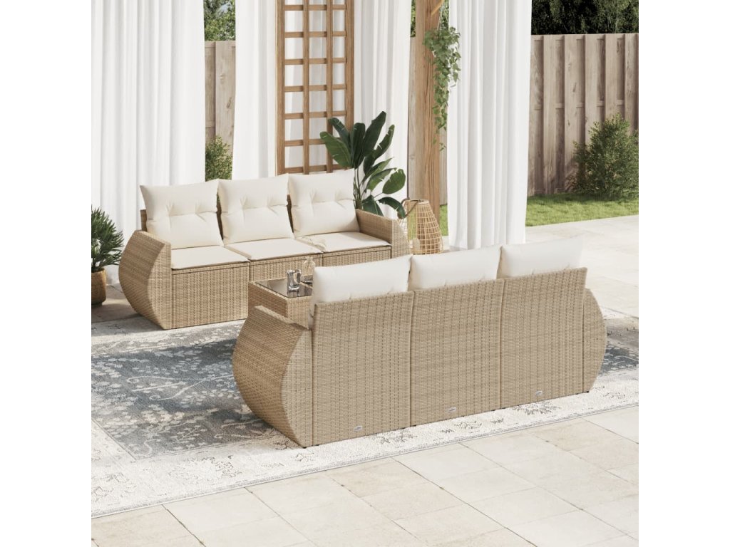 7dílná zahradní sedací souprava s poduškami béžová polyratan 3221107
