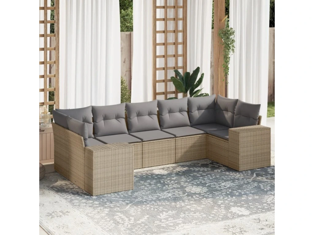 7dílná zahradní sedací souprava s poduškami béžová polyratan 3222988